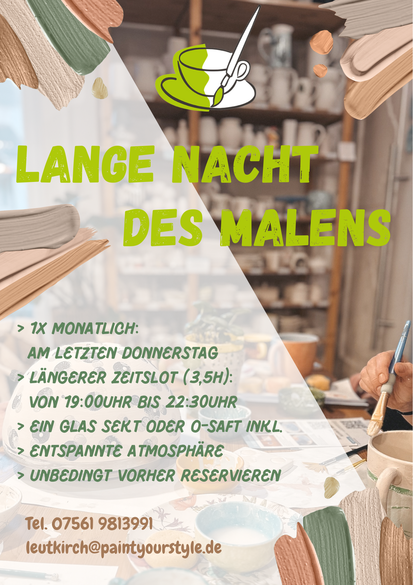 Bitte hab Verständnis dafür, dass wir Sitzplätze ausschließlich für Maler reservieren können (Begleitpersonen für Kinder sind selbstverständlich davon ausgenommen).