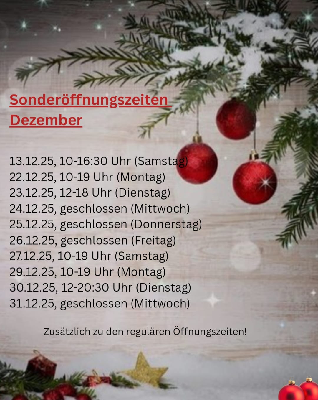 In der Woche vom 12. bis 17. Januar 2026 haben wir Betriebsferien. Es sind auch keine Abholungen möglich. Vielen Dank für Euer Verständnis.